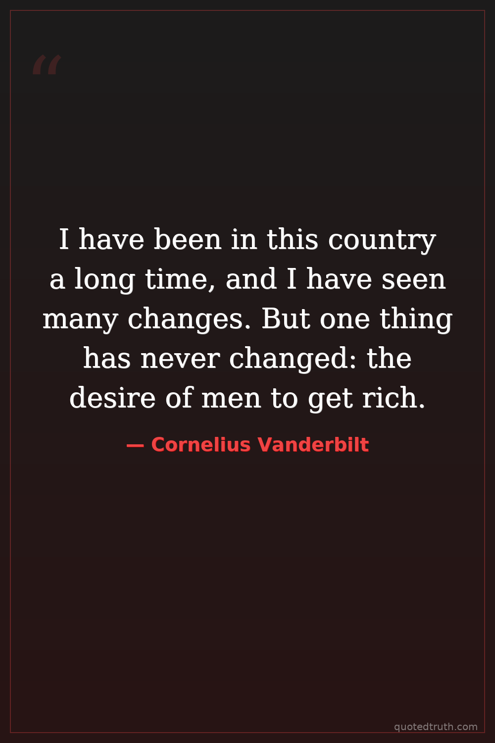 I have been in this country a long time, and I have seen many changes. But one thing has never changed: the desire of men to get rich.