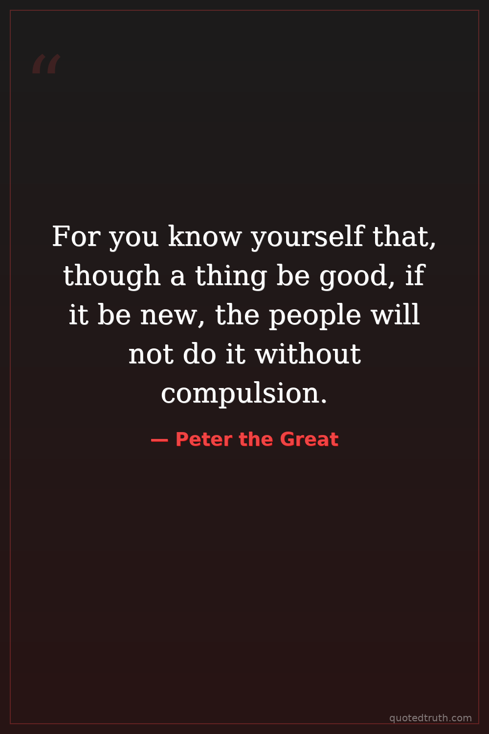 For you know yourself that, though a thing be good, if it be new, the people will not do it without compulsion.