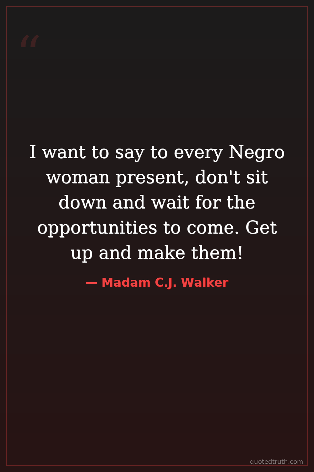 I want to say to every Negro woman present, don't sit down and wait for the opportunities to come. Get up and make them!