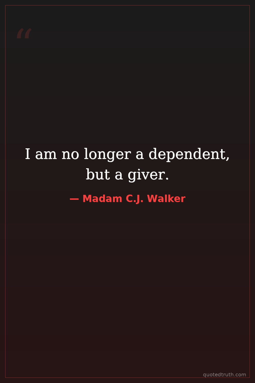 I am no longer a dependent, but a giver.