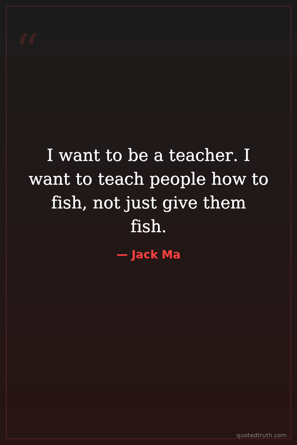 I want to be a teacher. I want to teach people how to fish, not just give them fish.