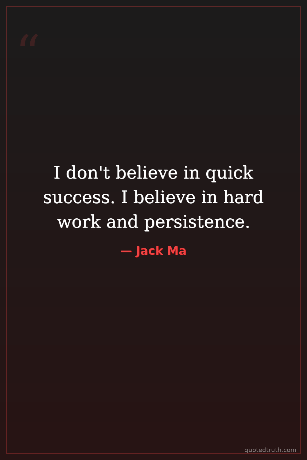I don't believe in quick success. I believe in hard work and persistence.