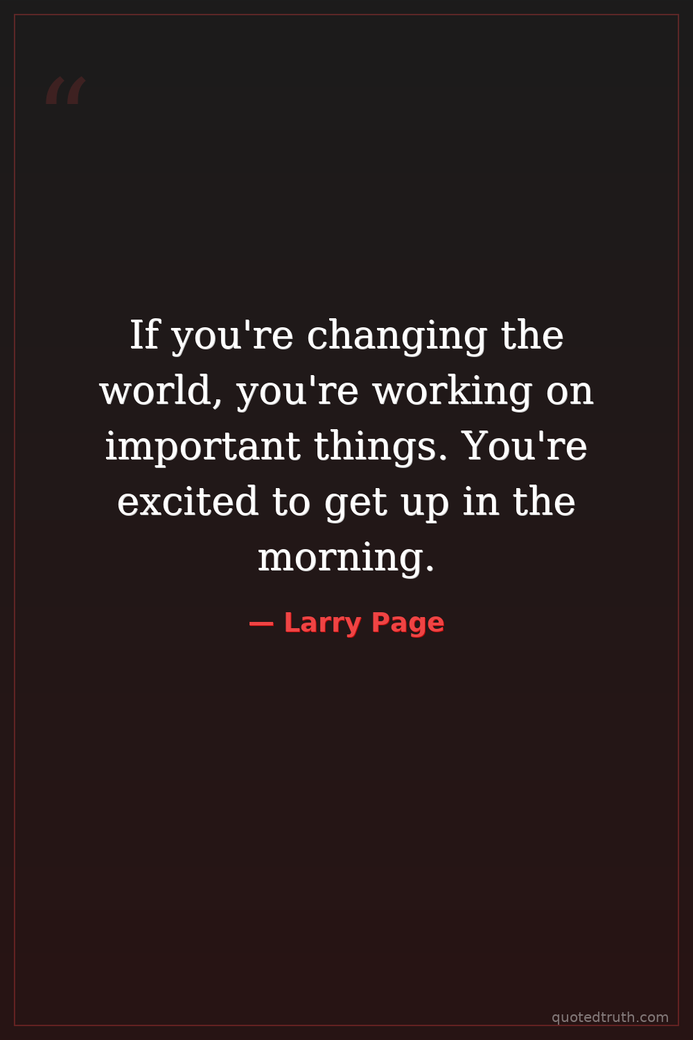 If you're changing the world, you're working on important things. You're excited to get up in the morning.
