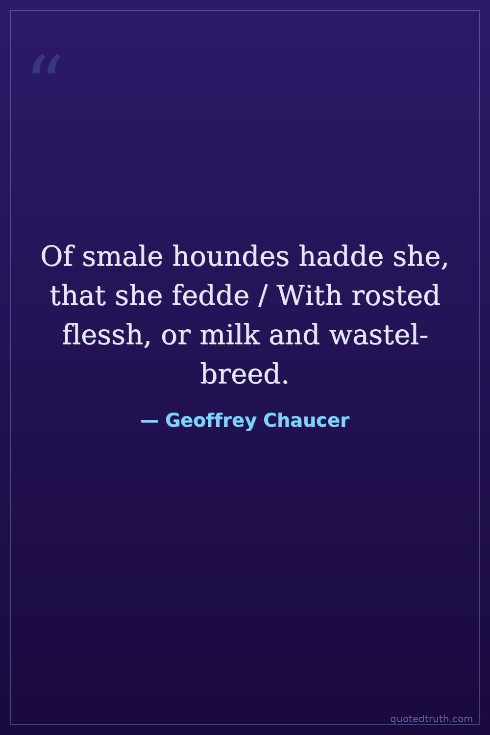 Of smale houndes hadde she, that she fedde / With rosted flessh, or milk and wastel-breed.