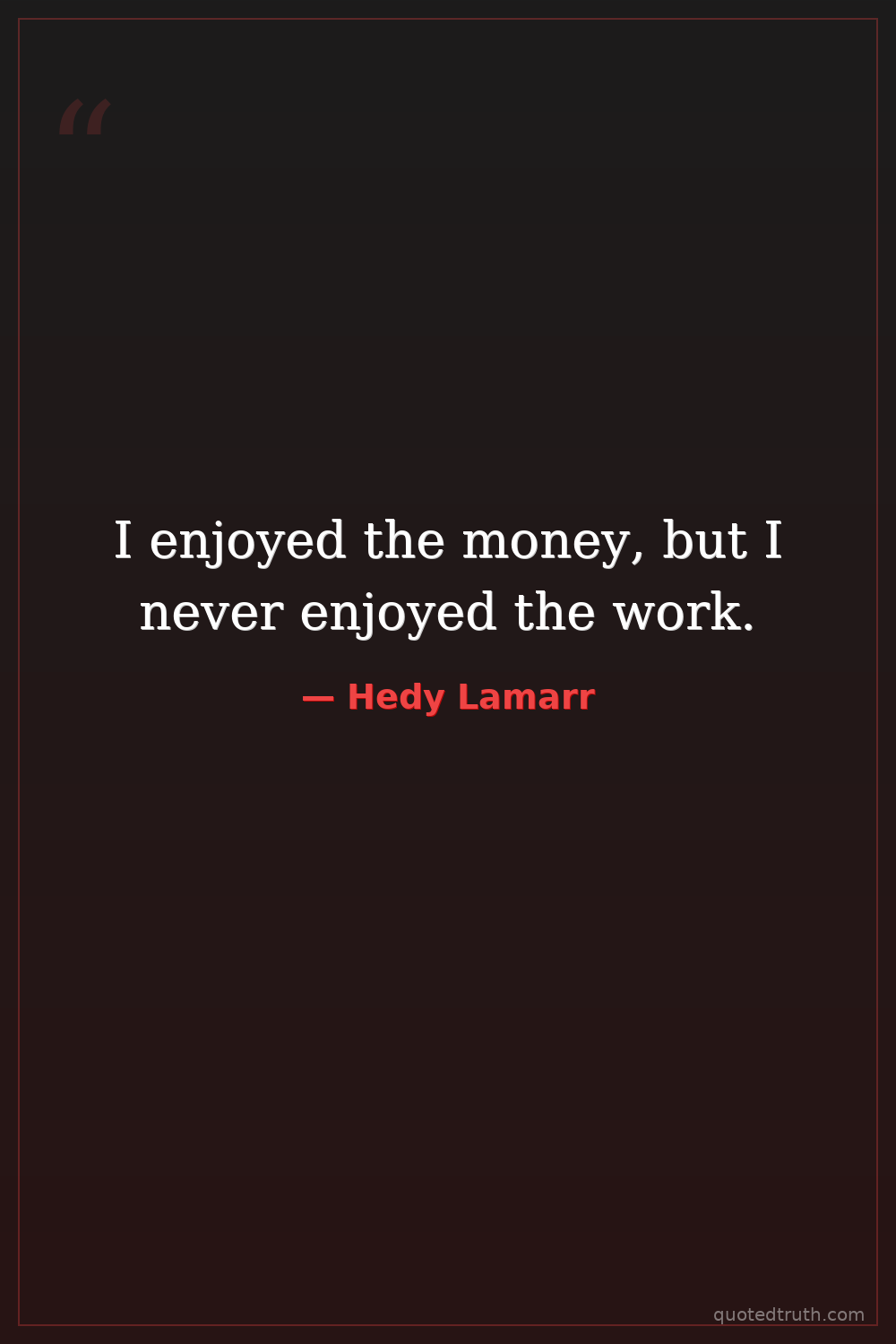 I enjoyed the money, but I never enjoyed the work.