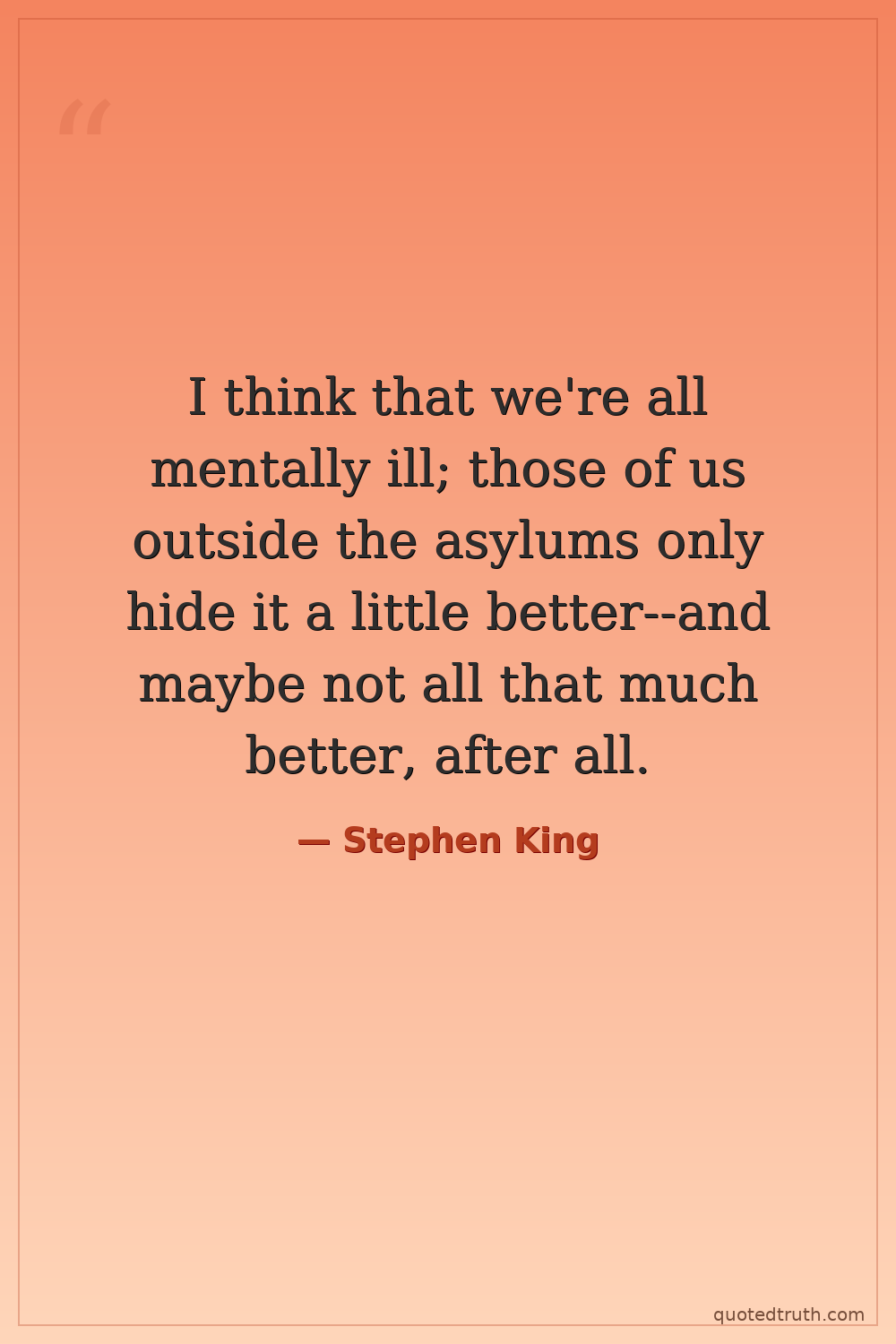 I think that we're all mentally ill; those of us outside the asylums only hide it a little better--and maybe not all that much better, after all.