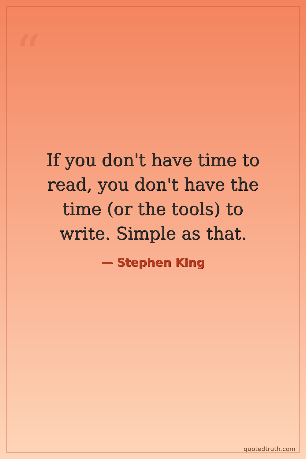 If you don't have time to read, you don't have the time (or the tools) to write. Simple as that.