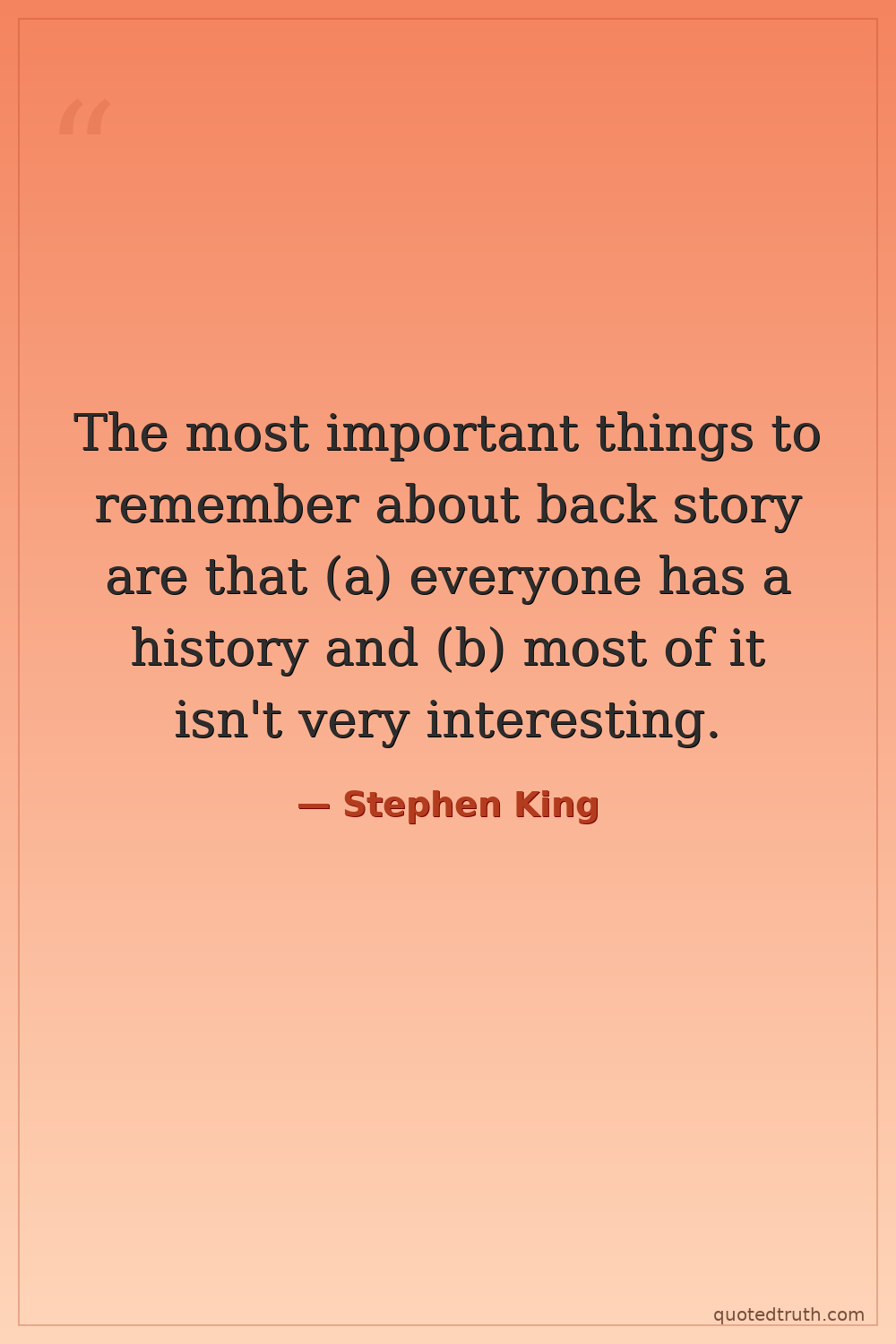 The most important things to remember about back story are that (a) everyone has a history and (b) most of it isn't very interesting.
