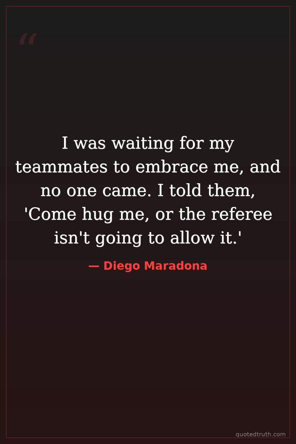 I was waiting for my teammates to embrace me, and no one came. I told them, 'Come hug me, or the referee isn't going to allow it.'