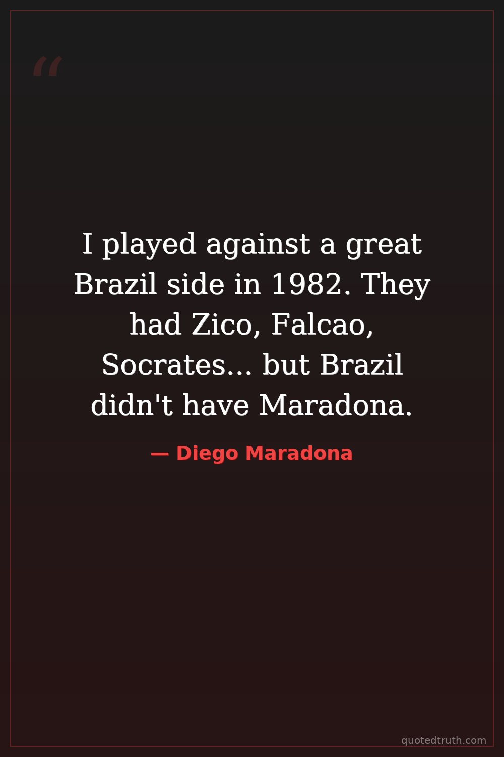 I played against a great Brazil side in 1982. They had Zico, Falcao, Socrates... but Brazil didn't have Maradona.