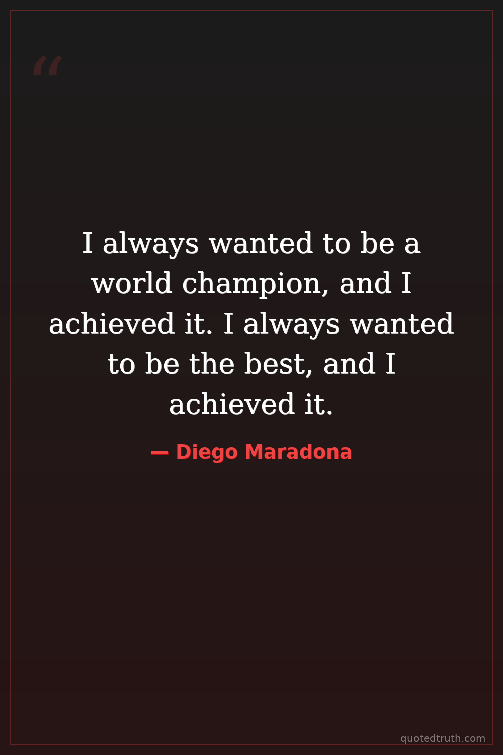 I always wanted to be a world champion, and I achieved it. I always wanted to be the best, and I achieved it.
