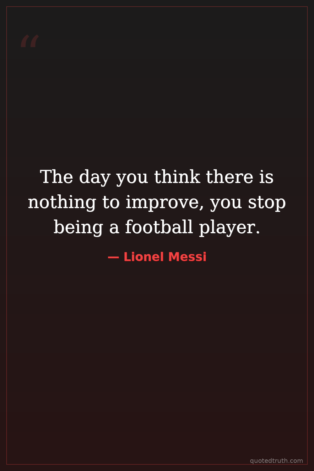 The day you think there is nothing to improve, you stop being a football player.