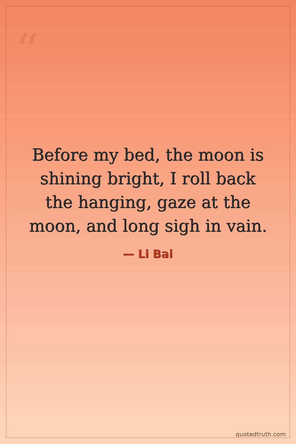 Before my bed, the moon is shining bright, I roll back the hanging, gaze at the moon, and long sigh in vain.