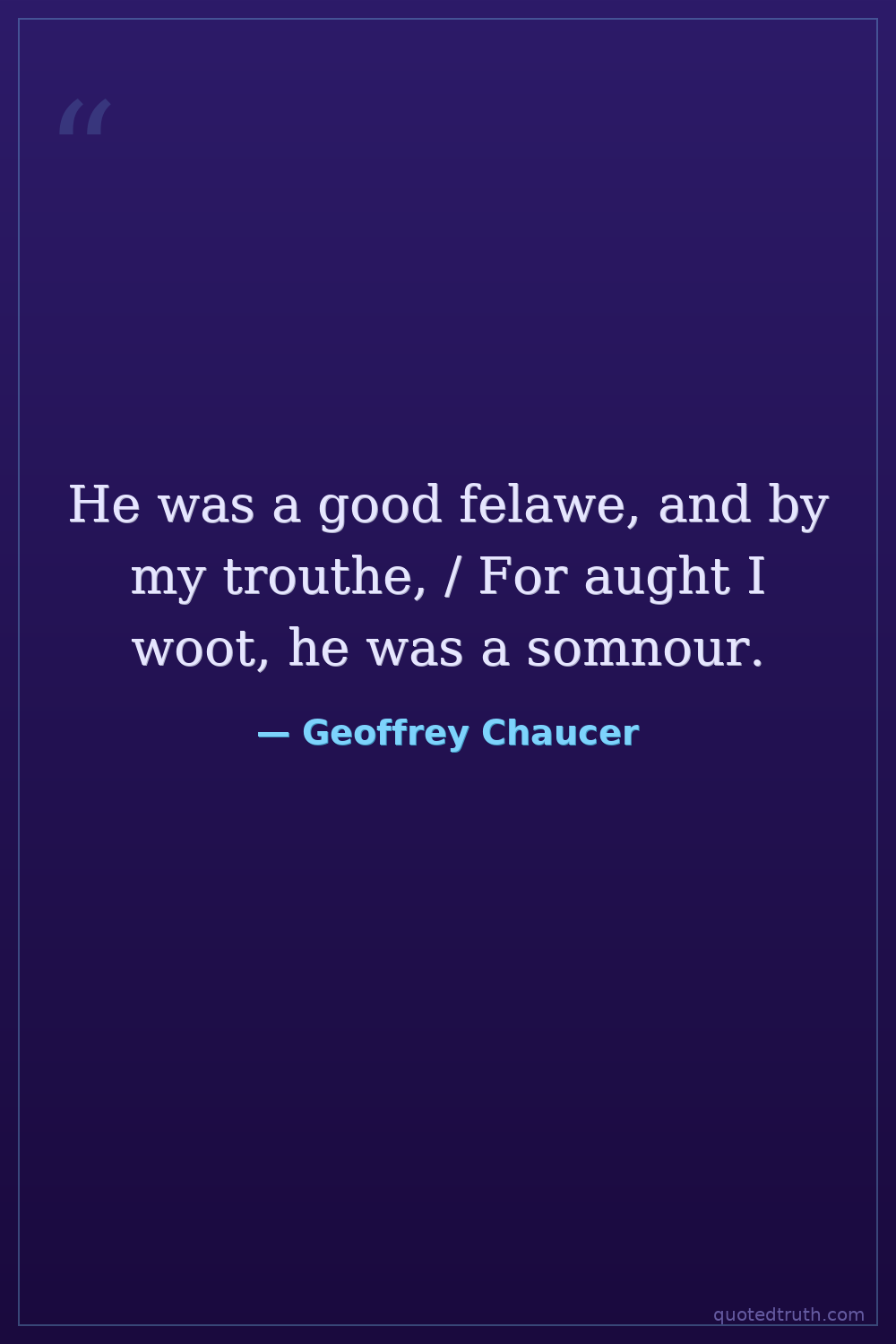 He was a good felawe, and by my trouthe, / For aught I woot, he was a somnour.