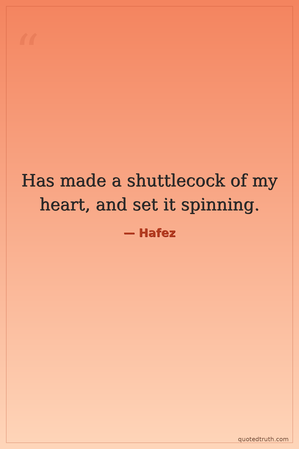 Has made a shuttlecock of my heart, and set it spinning.