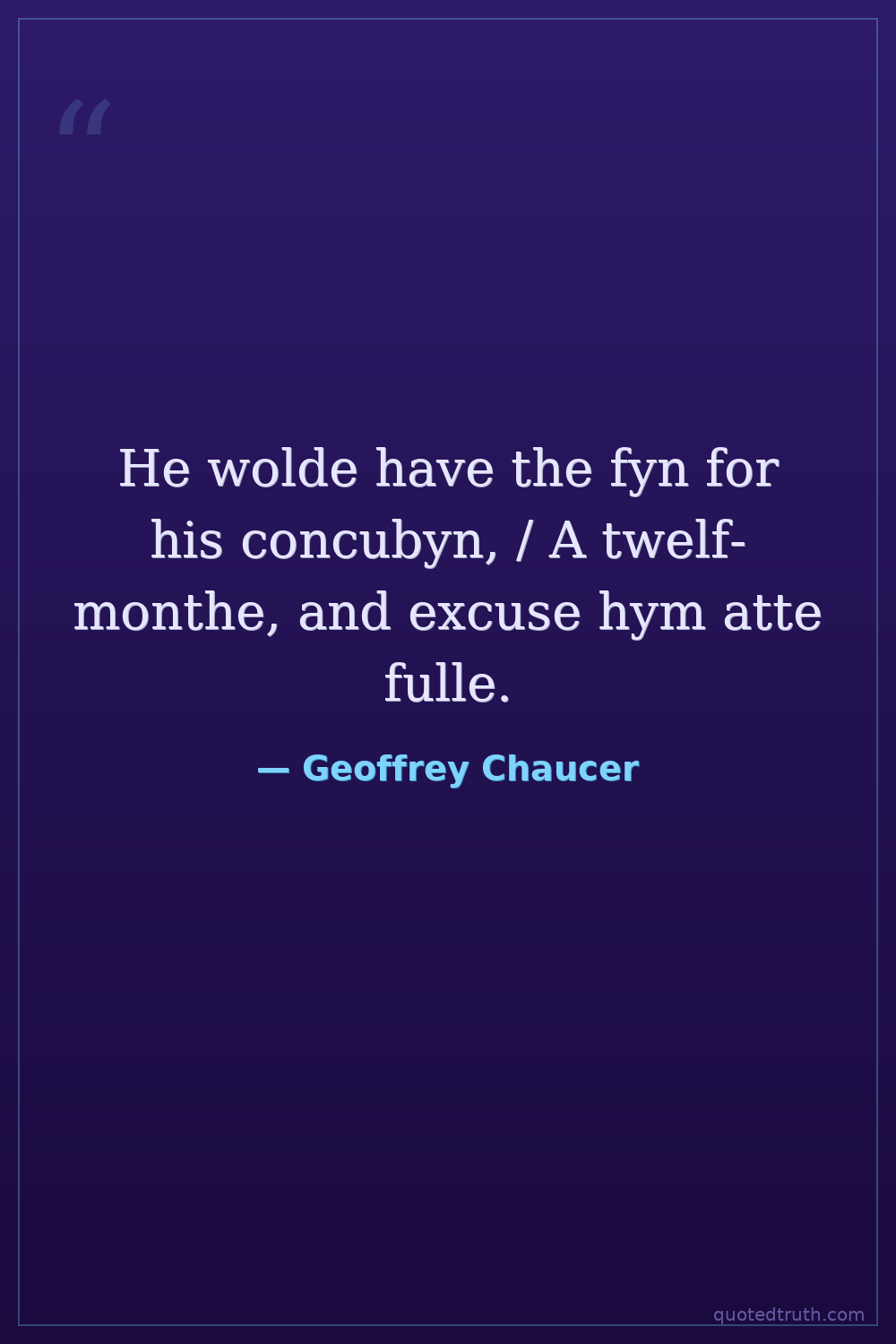 He wolde have the fyn for his concubyn, / A twelf-monthe, and excuse hym atte fulle.