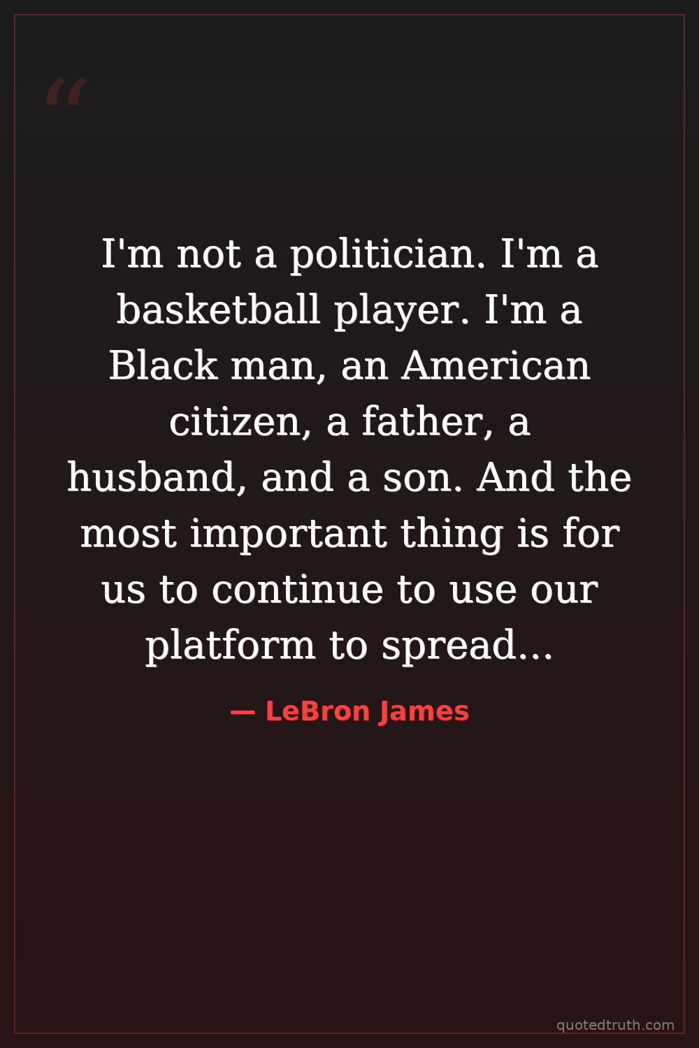 I'm not a politician. I'm a basketball player. I'm a Black man, an American citizen, a father, a husband, and a son. And the most important thing is for us to continue to use our platform to spread a lot of joy, a lot of love, and a lot of hope.