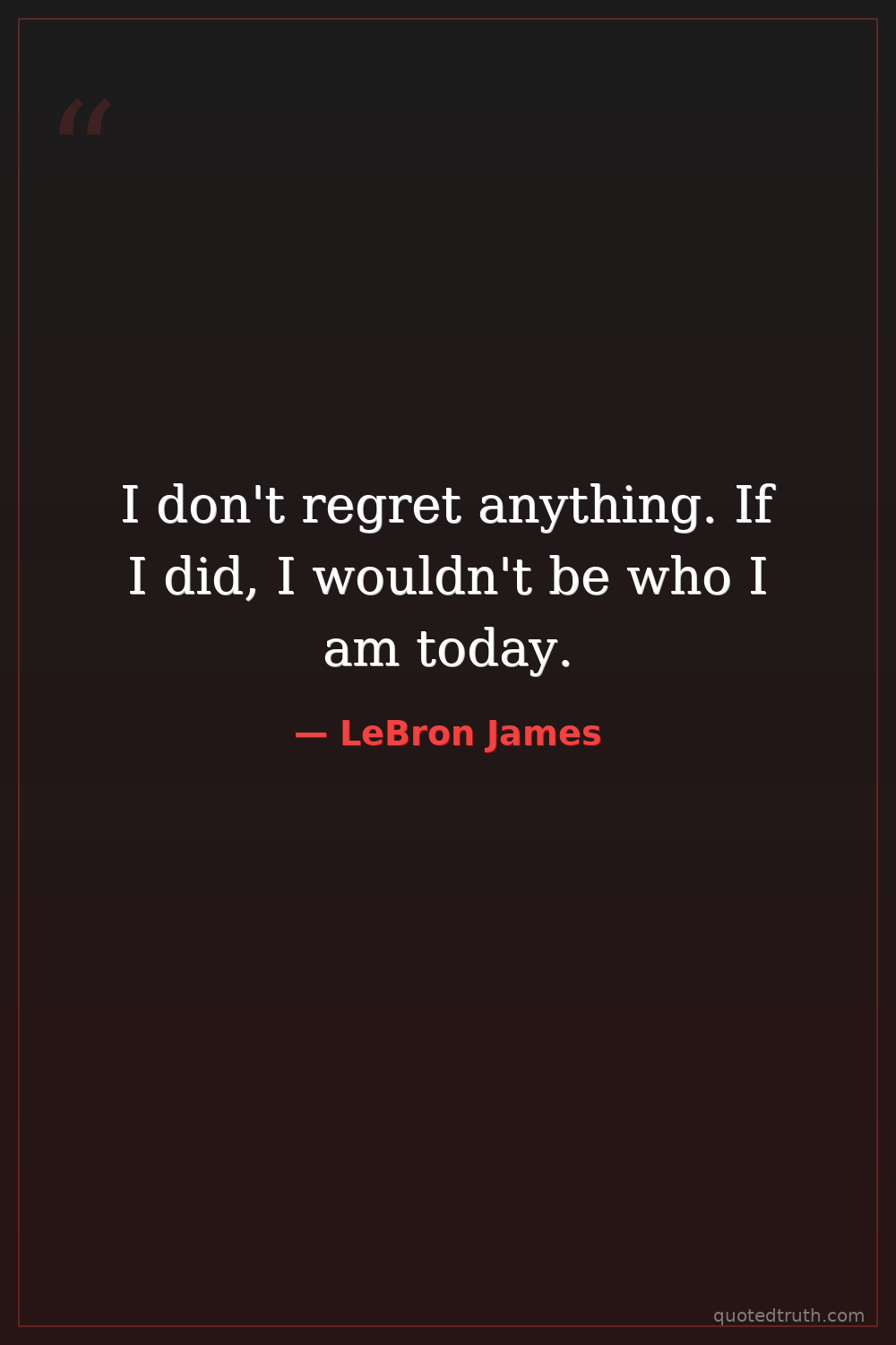 I don't regret anything. If I did, I wouldn't be who I am today.