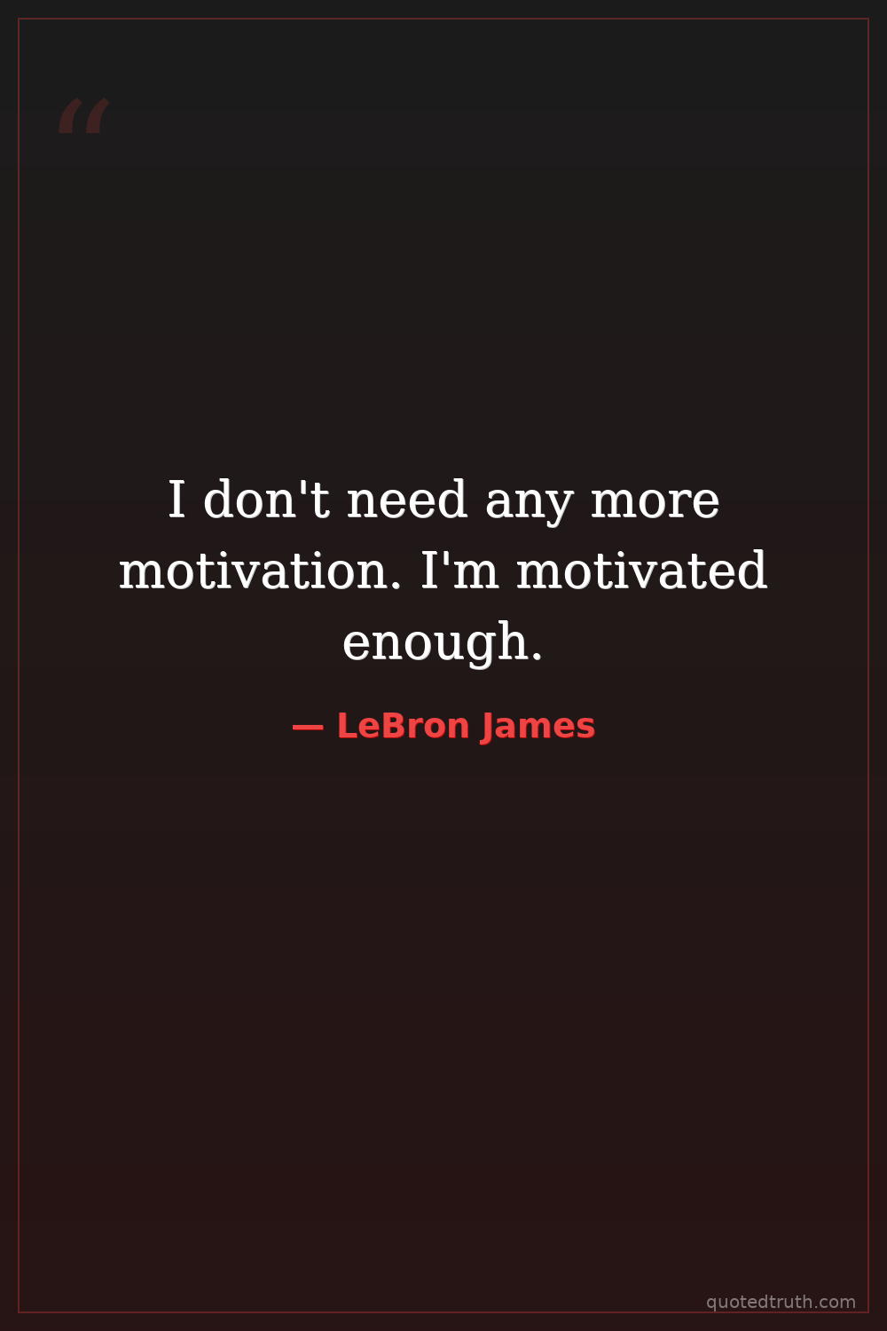 I don't need any more motivation. I'm motivated enough.