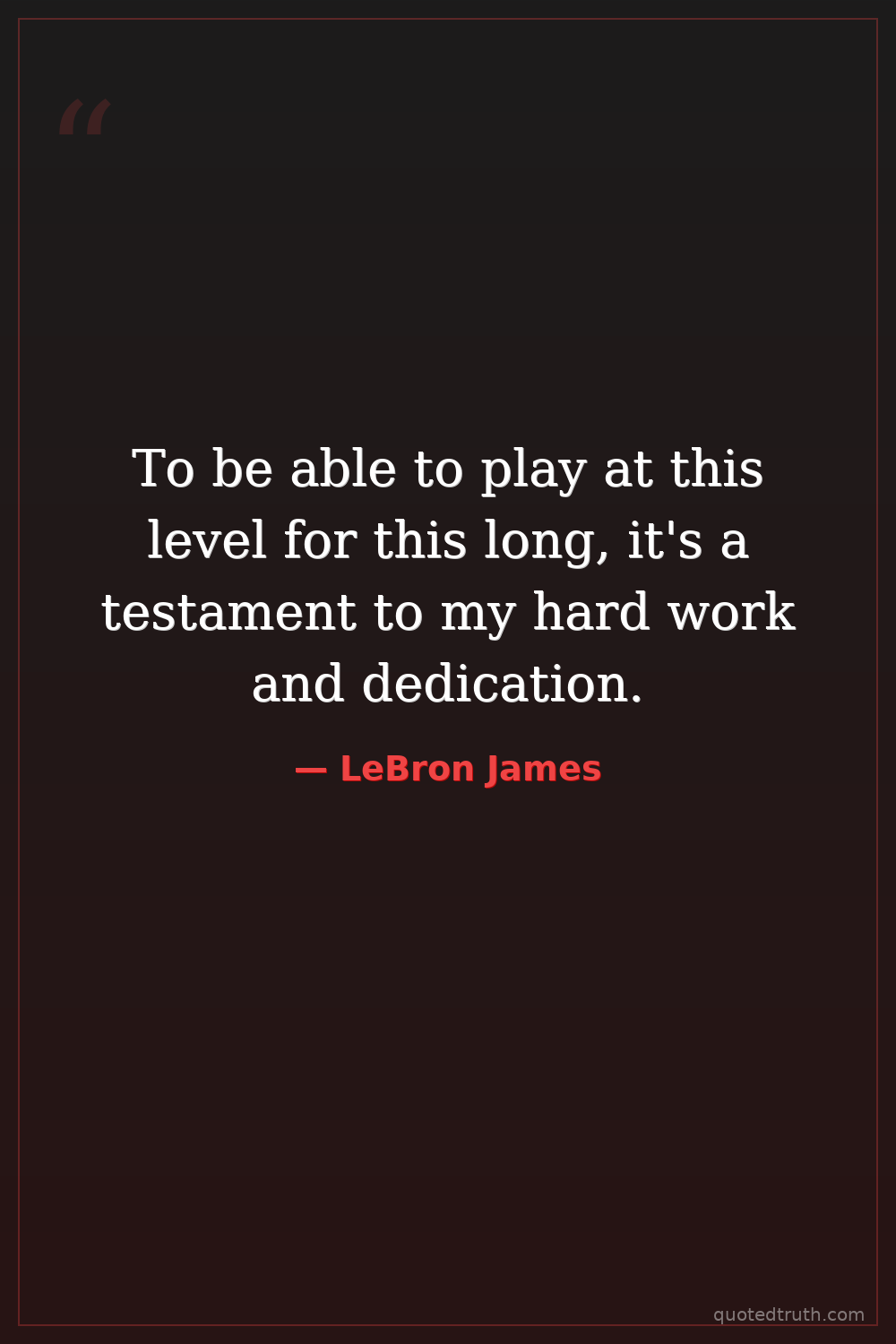 To be able to play at this level for this long, it's a testament to my hard work and dedication.