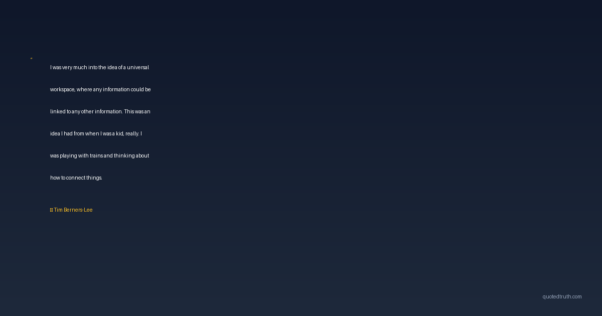 I was very much into the idea of a universal workspace, where any information could be linked to any other information. This was an idea I had from when I was a kid, really. I was playing with trains and thinking about how to connect things.