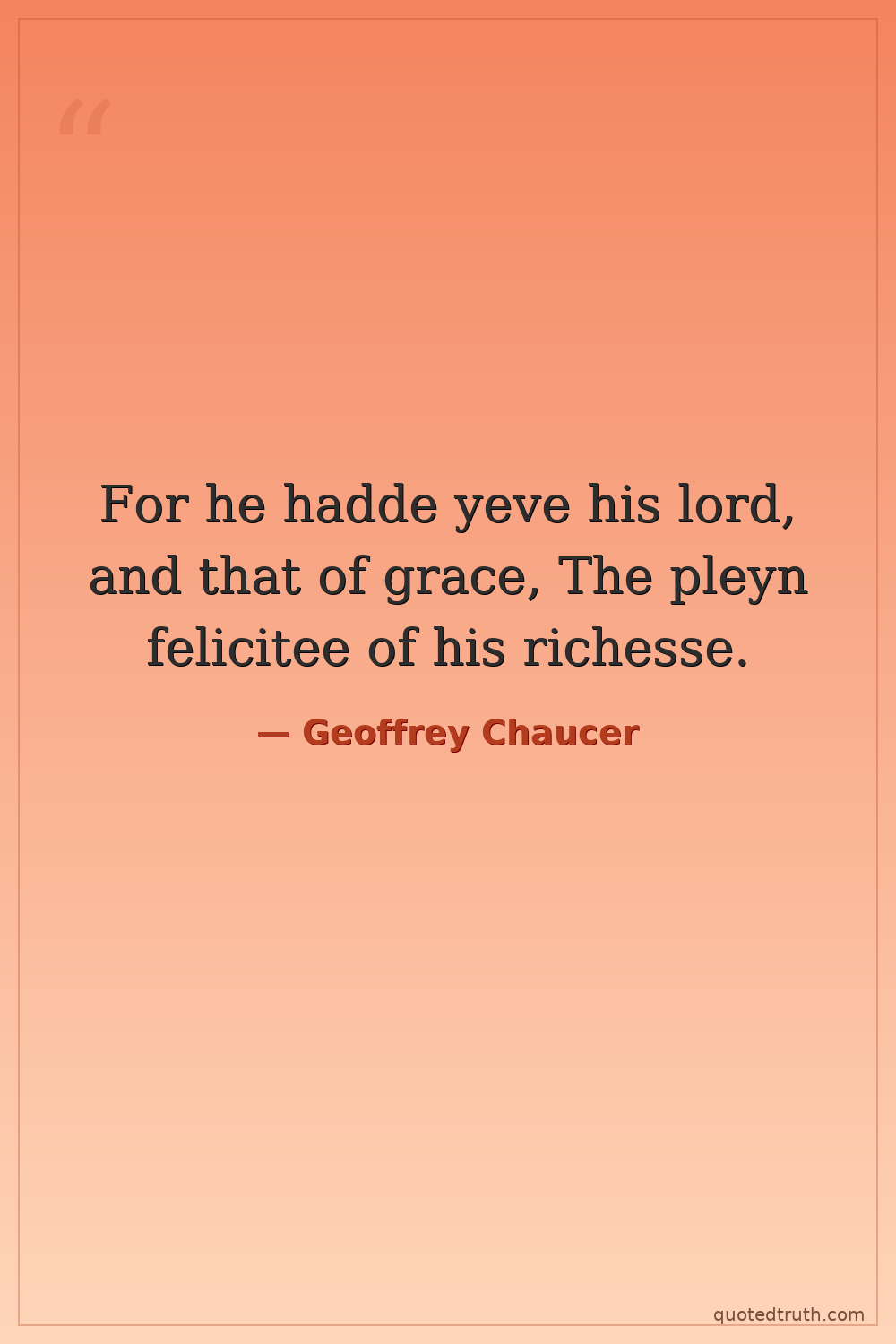 The Canterbury Tales, General Prologue (describing the Reeve, ironically suggesting he 'gave' his lord wealth that was likely his own)