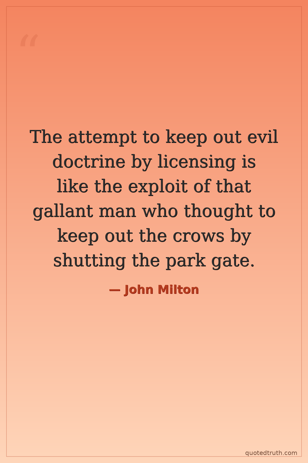 The attempt to keep out evil doctrine by licensing is like the exploit of that gallant man who thought to keep out the crows by shutting the park gate.