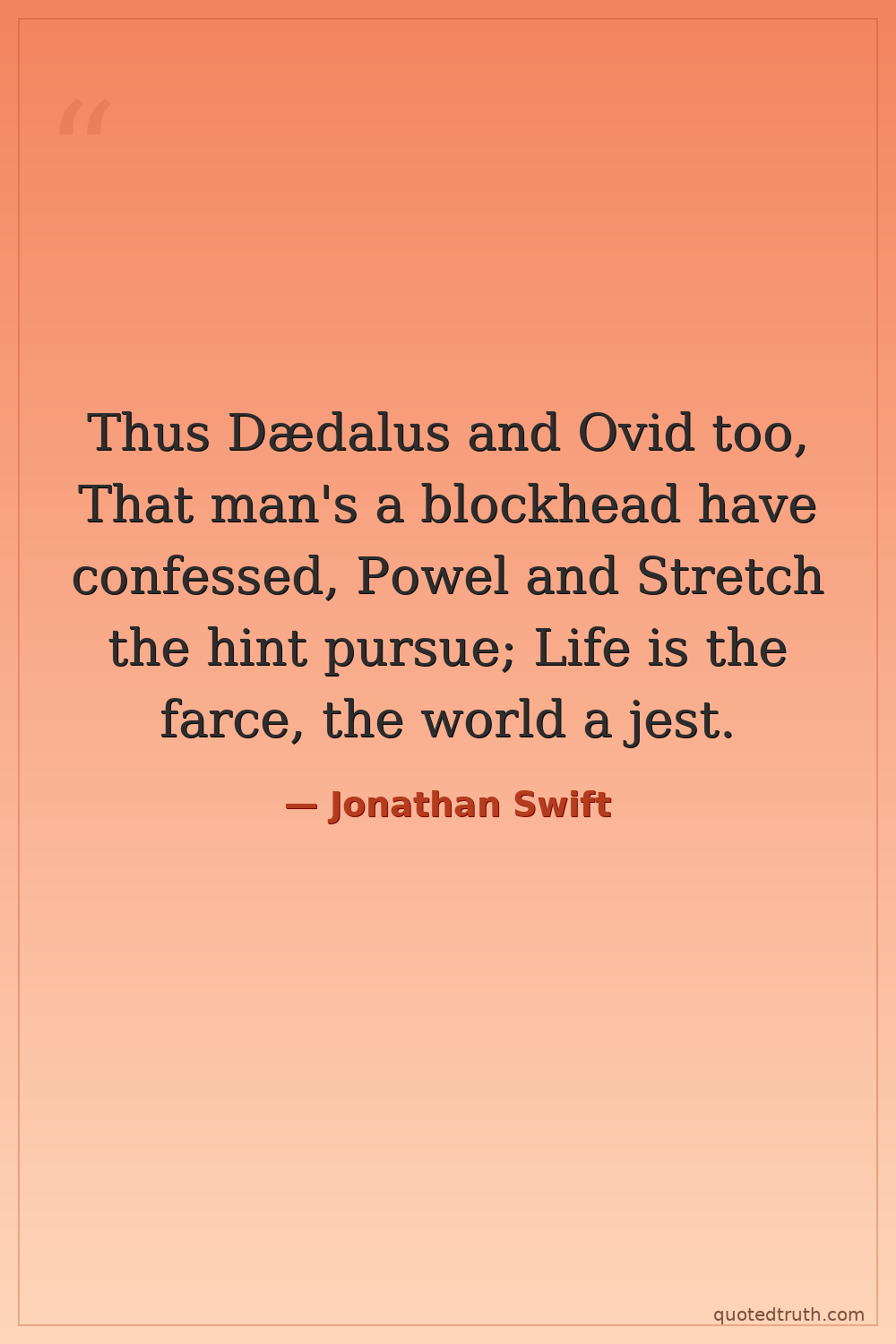Thus Dædalus and Ovid too, That man's a blockhead have confessed, Powel and Stretch the hint pursue; Life is the farce, the world a jest.