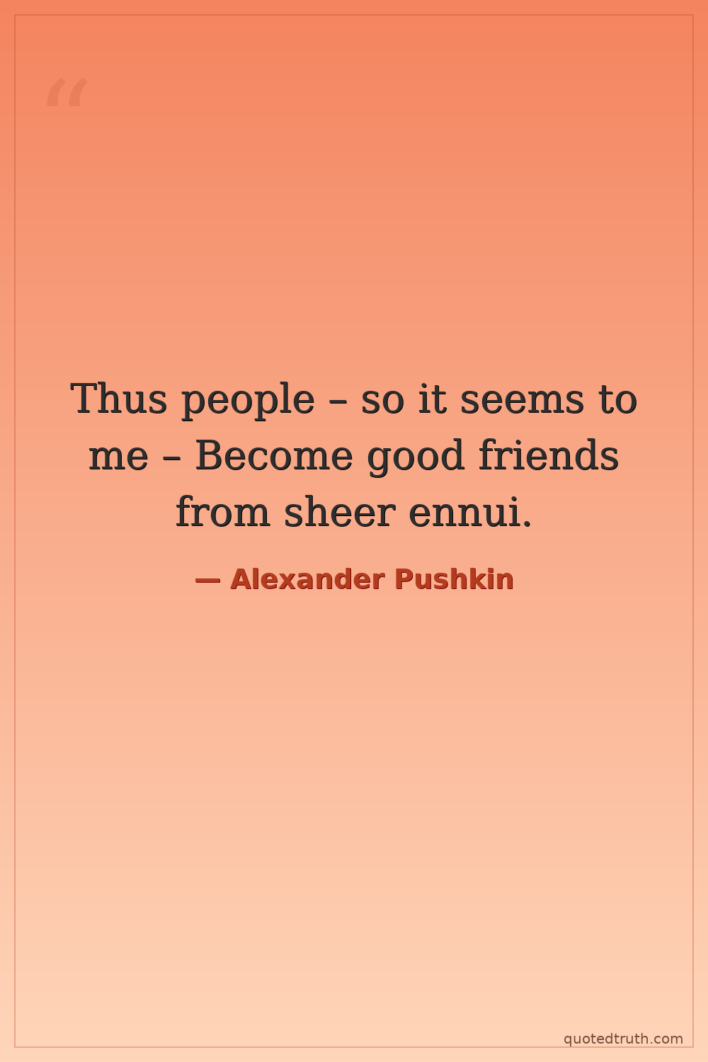 Thus people – so it seems to me – Become good friends from sheer ennui.