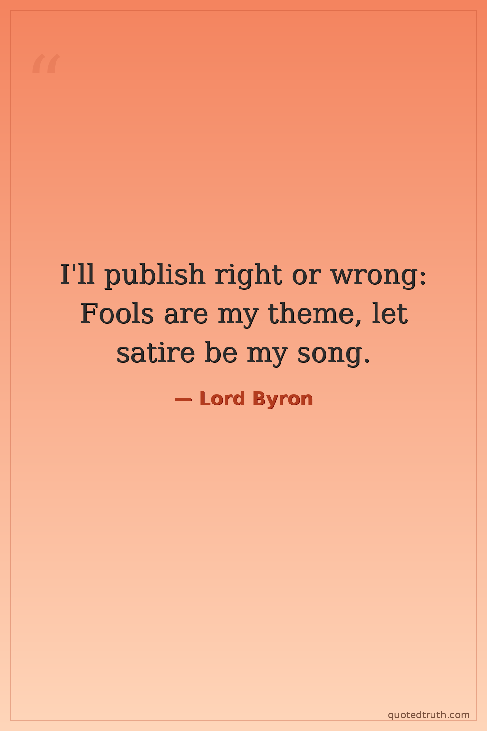 I'll publish right or wrong: Fools are my theme, let satire be my song.