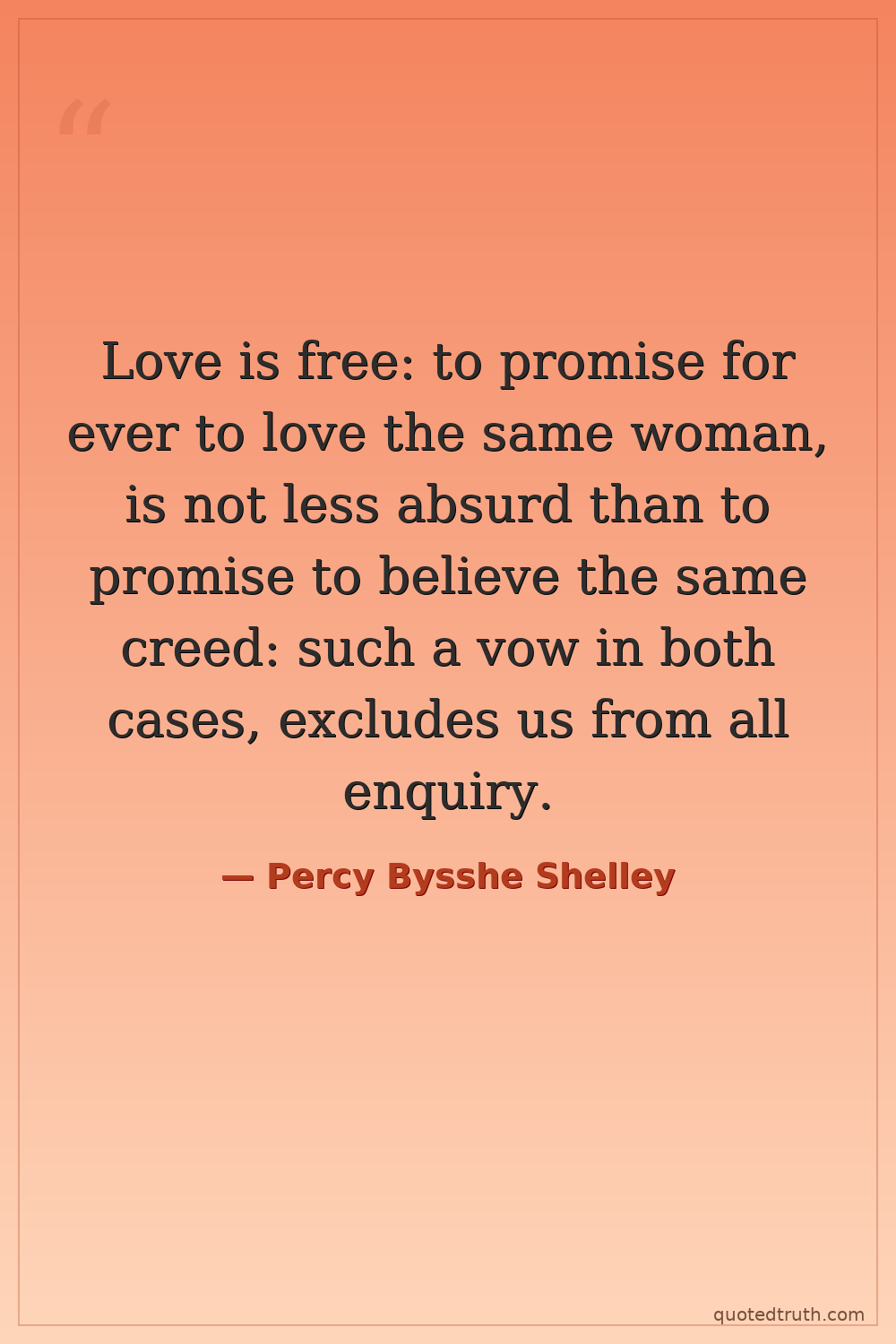 Love is free: to promise for ever to love the same woman, is not less absurd than to promise to believe the same creed: such a vow in both cases, excludes us from all enquiry.