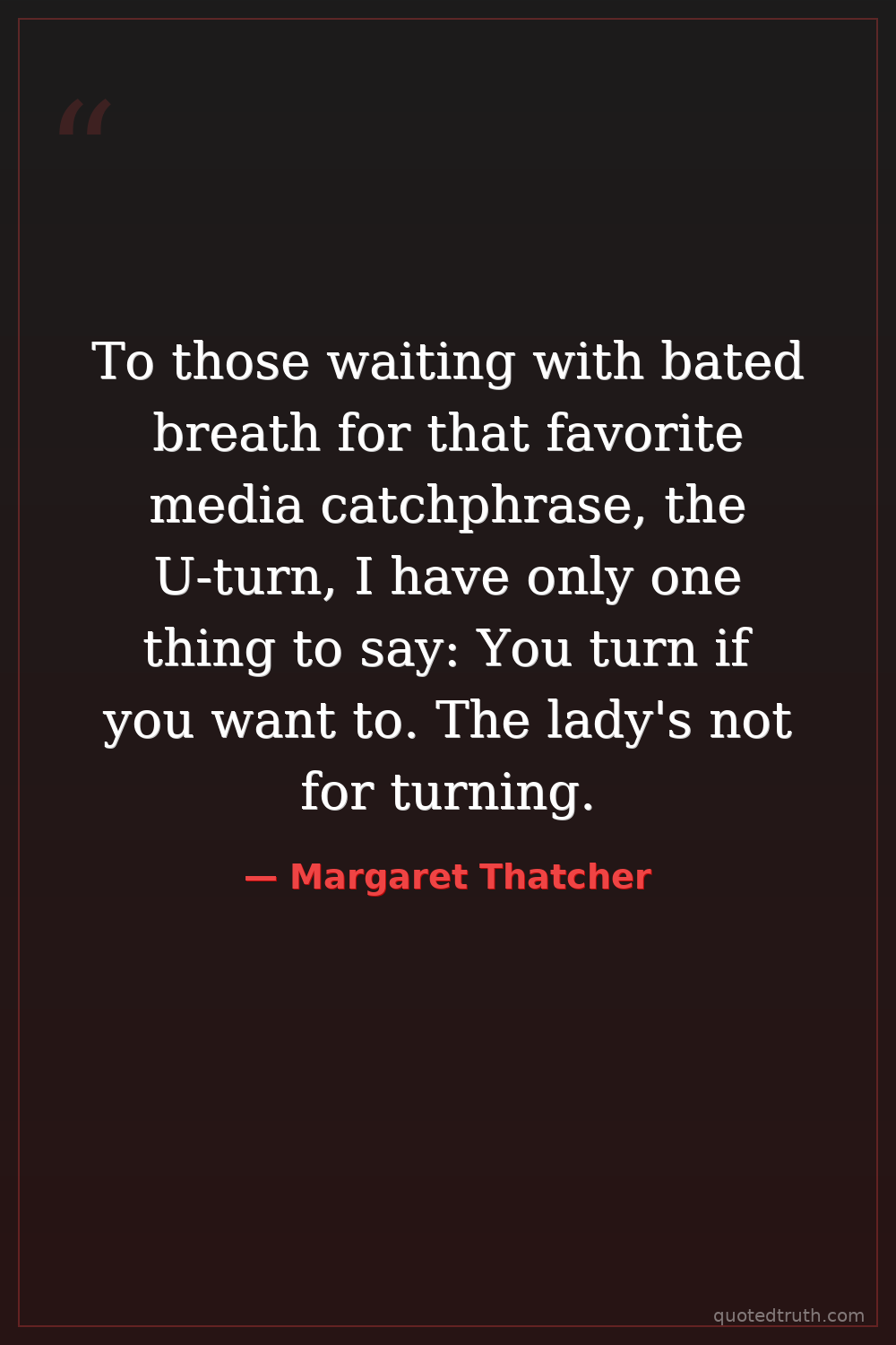 To those waiting with bated breath for that favorite media catchphrase, the U-turn, I have only one thing to say: You turn if you want to. The lady's not for turning.