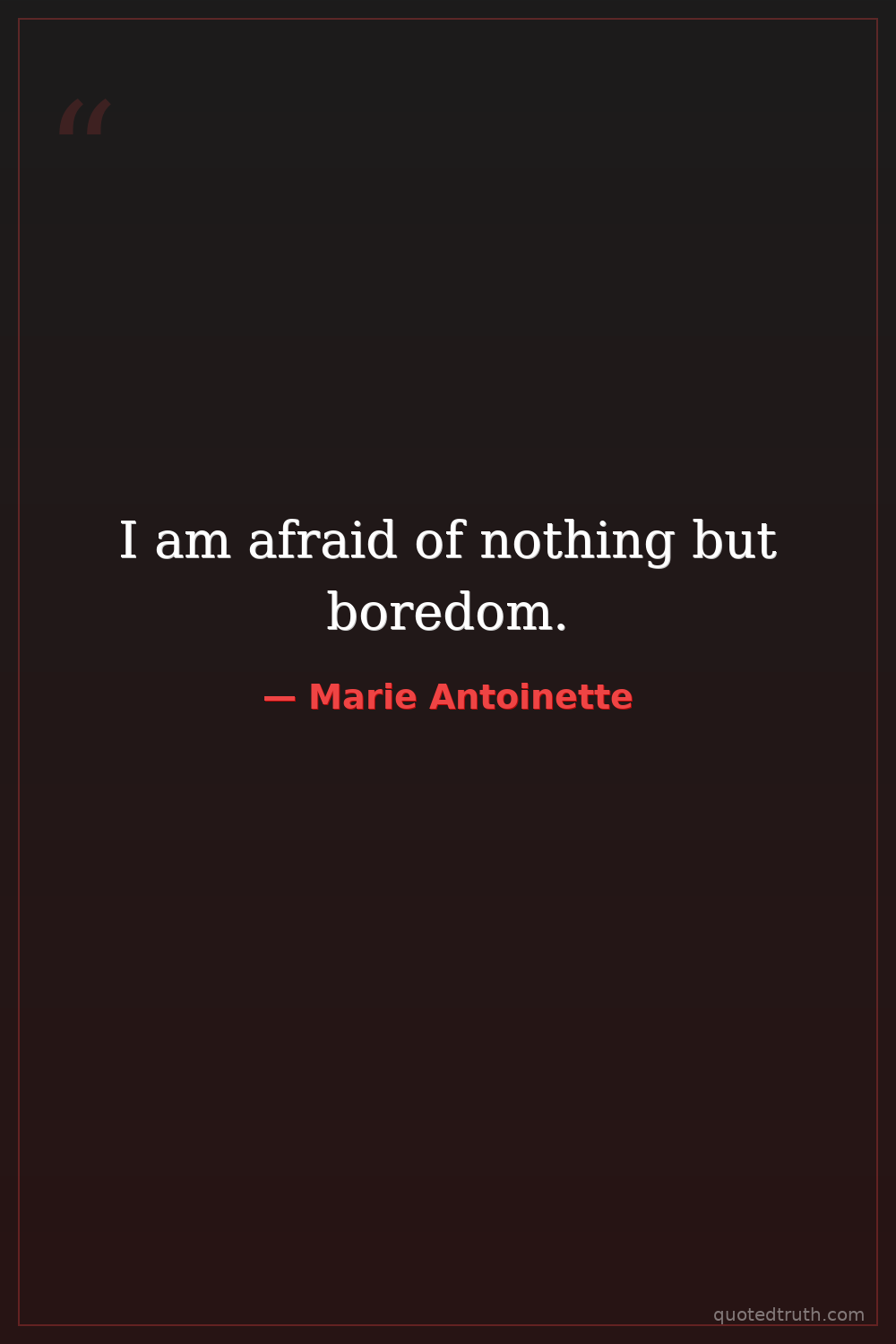 I am afraid of nothing but boredom.