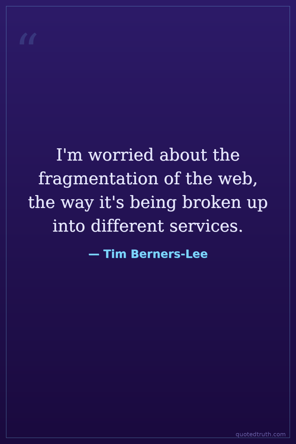 I'm worried about the fragmentation of the web, the way it's being broken up into different services.