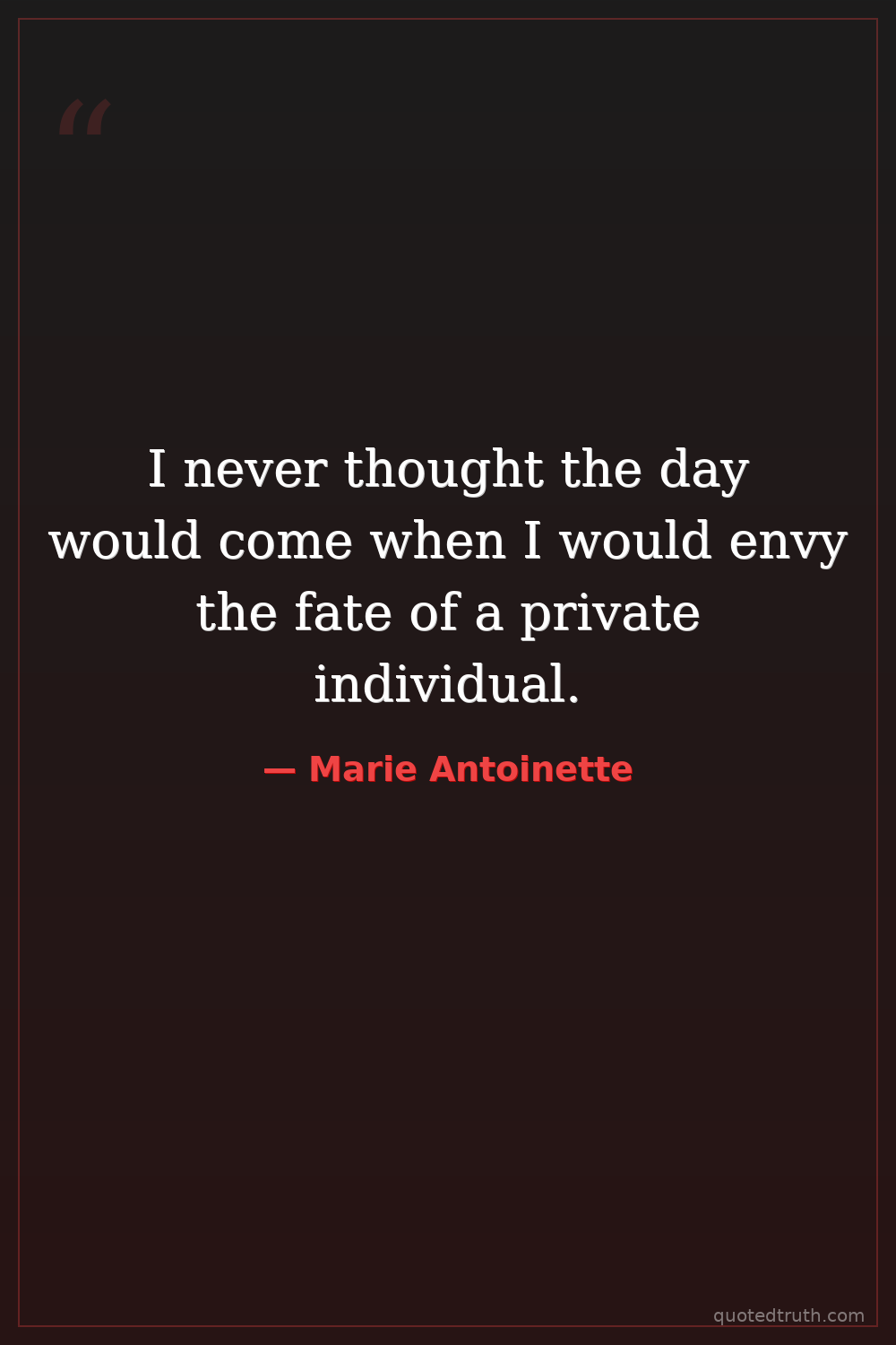 I never thought the day would come when I would envy the fate of a private individual.