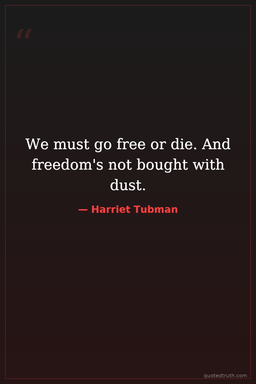We must go free or die. And freedom's not bought with dust.