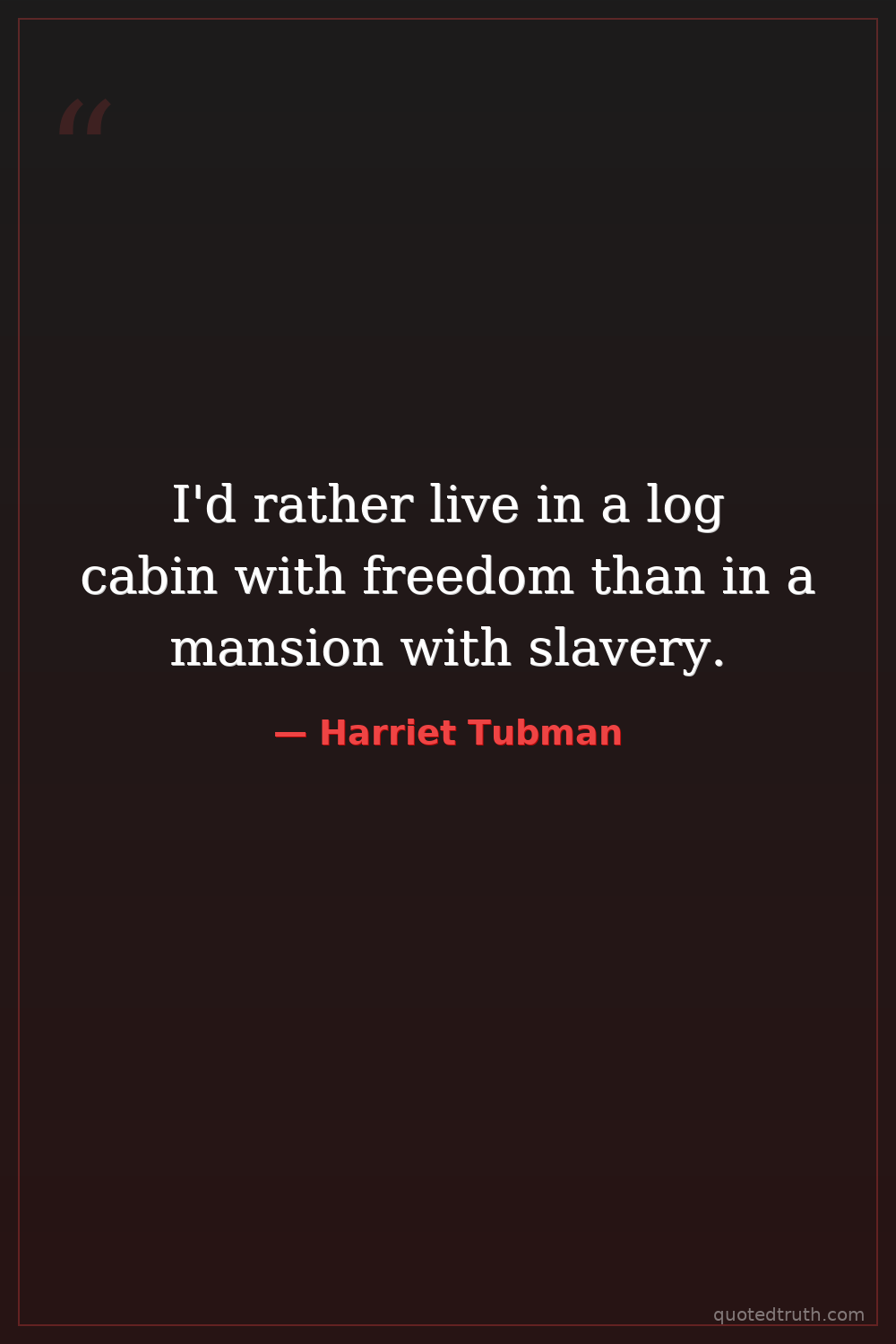 I'd rather live in a log cabin with freedom than in a mansion with slavery.