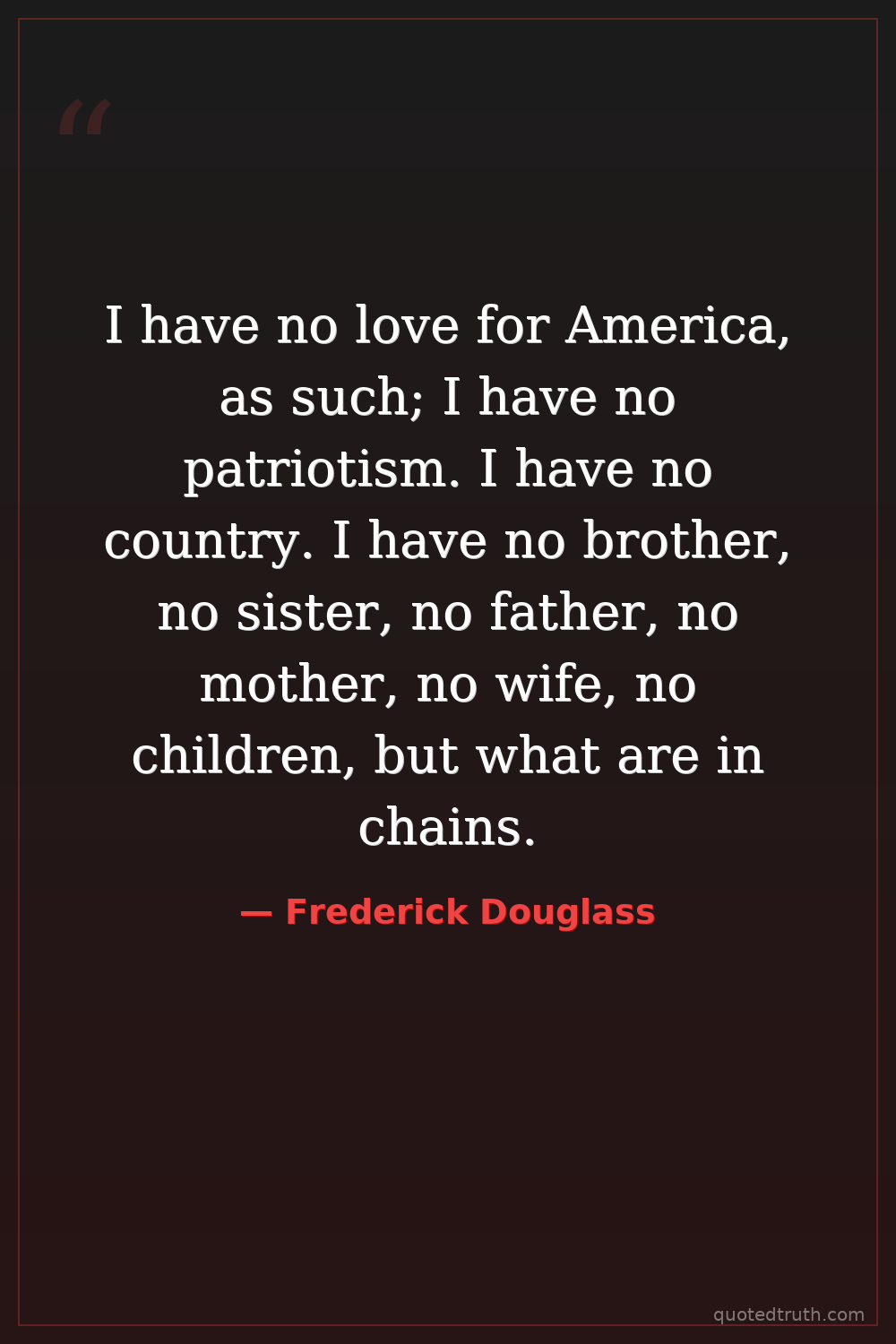 I have no love for America, as such; I have no patriotism. I have no country. I have no brother, no sister, no father, no mother, no wife, no children, but what are in chains.