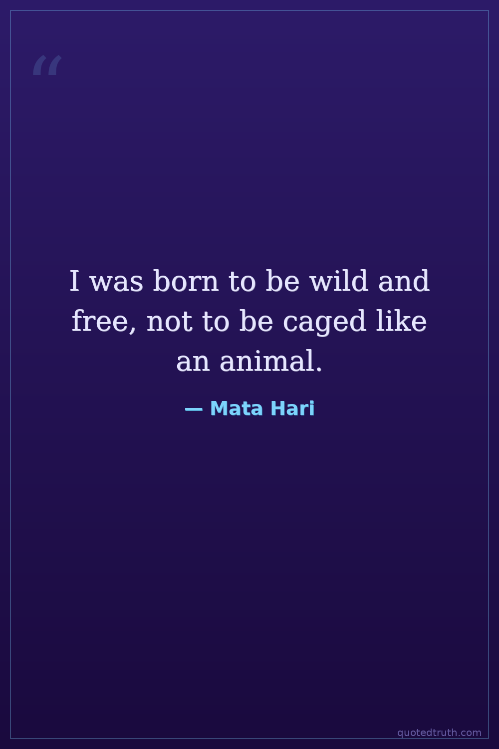 Humorous"I was not a spy. I was a dancer, and a courtesan. I danced for pleasure, and for money. I never harmed France."