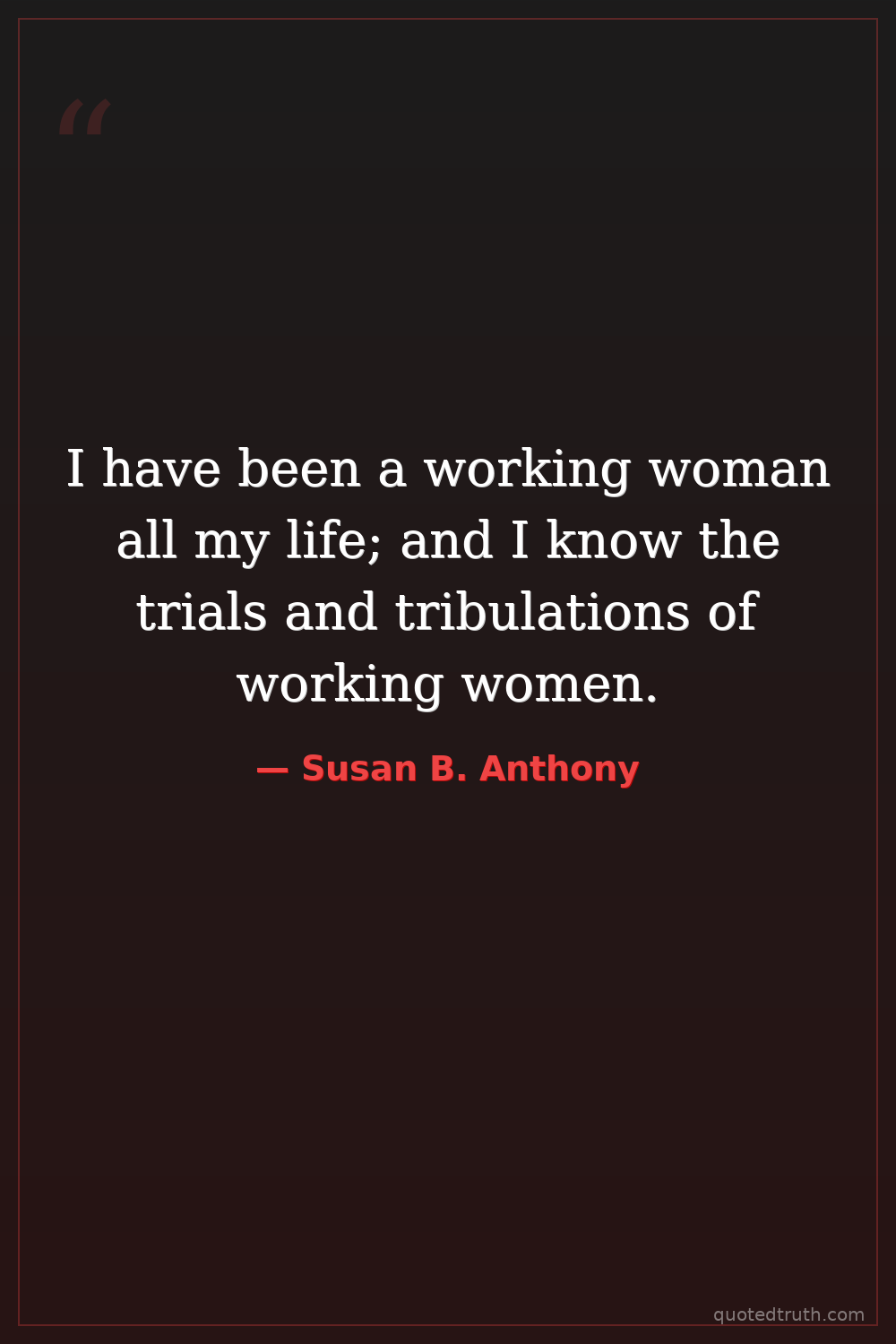 I have been a working woman all my life; and I know the trials and tribulations of working women.