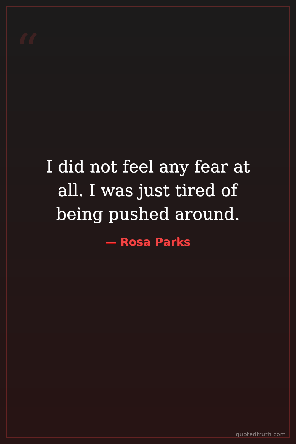 I did not feel any fear at all. I was just tired of being pushed around.