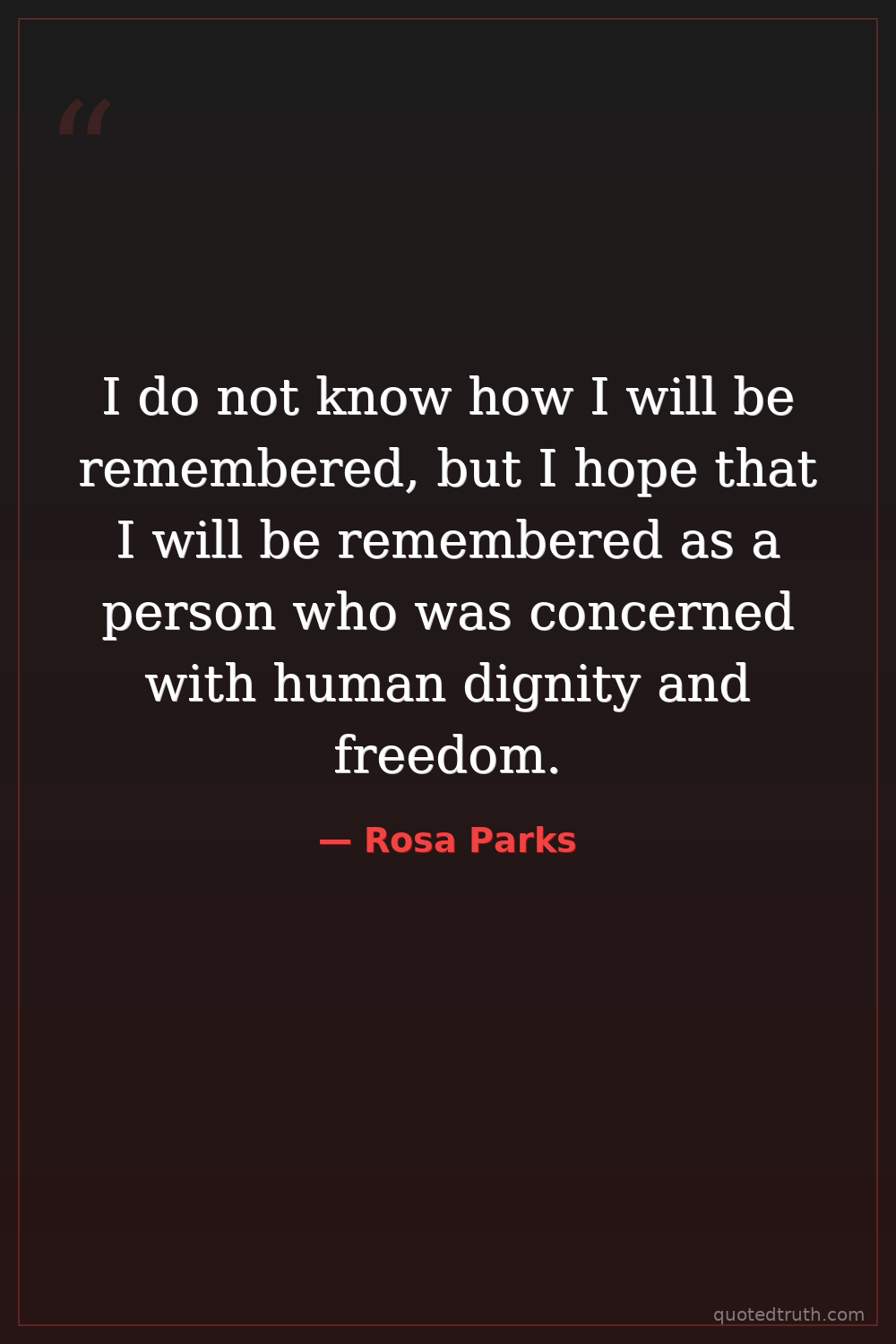 I do not know how I will be remembered, but I hope that I will be remembered as a person who was concerned with human dignity and freedom.