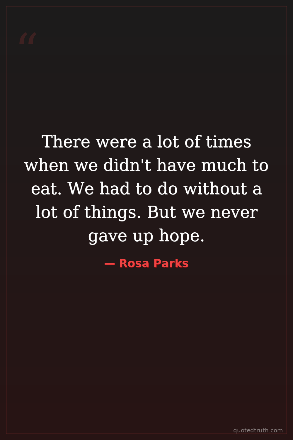 There were a lot of times when we didn't have much to eat. We had to do without a lot of things. But we never gave up hope.