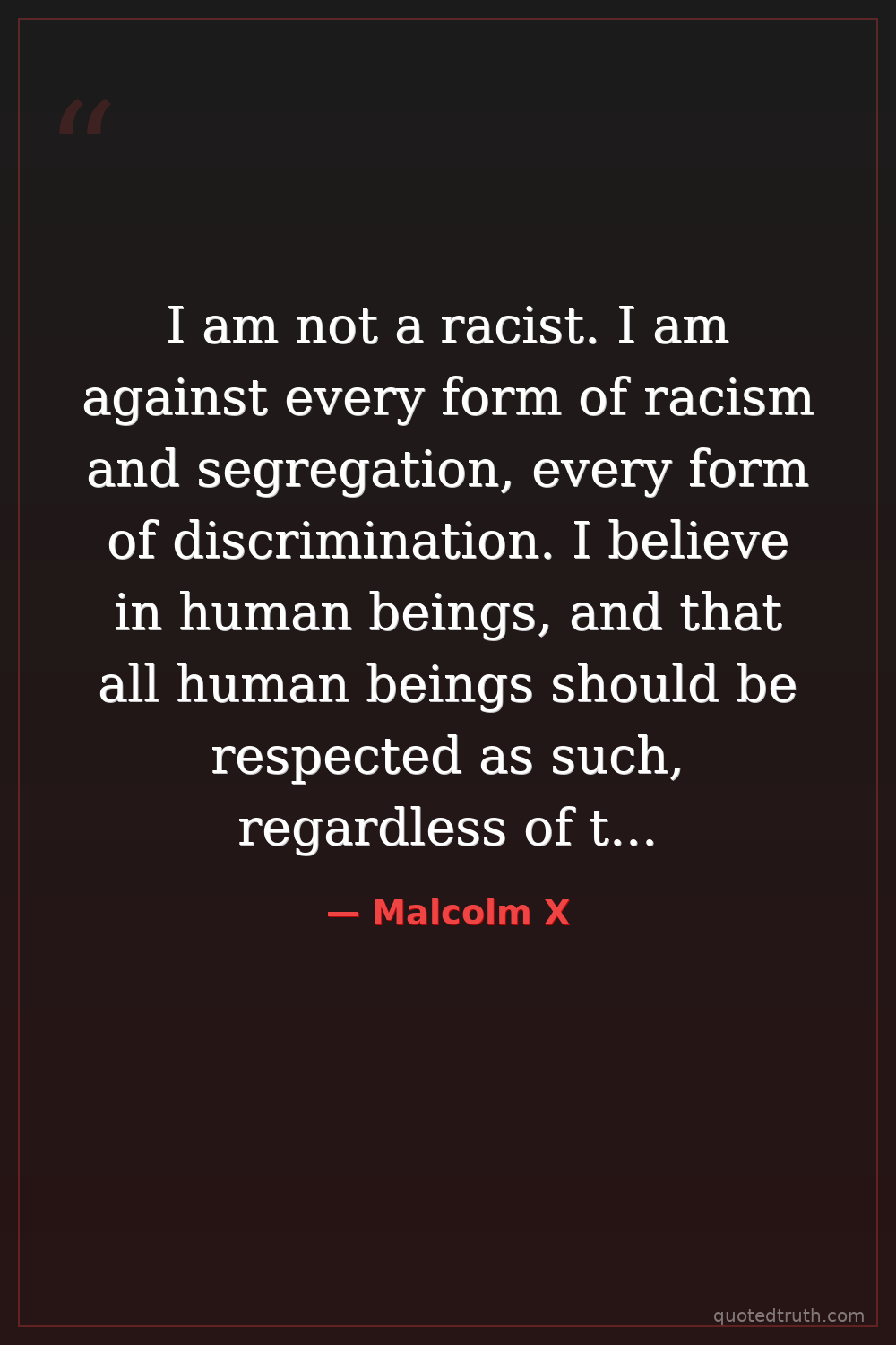 I am not a racist. I am against every form of racism and segregation, every form of discrimination. I believe in human beings, and that all human beings should be respected as such, regardless of their color.
