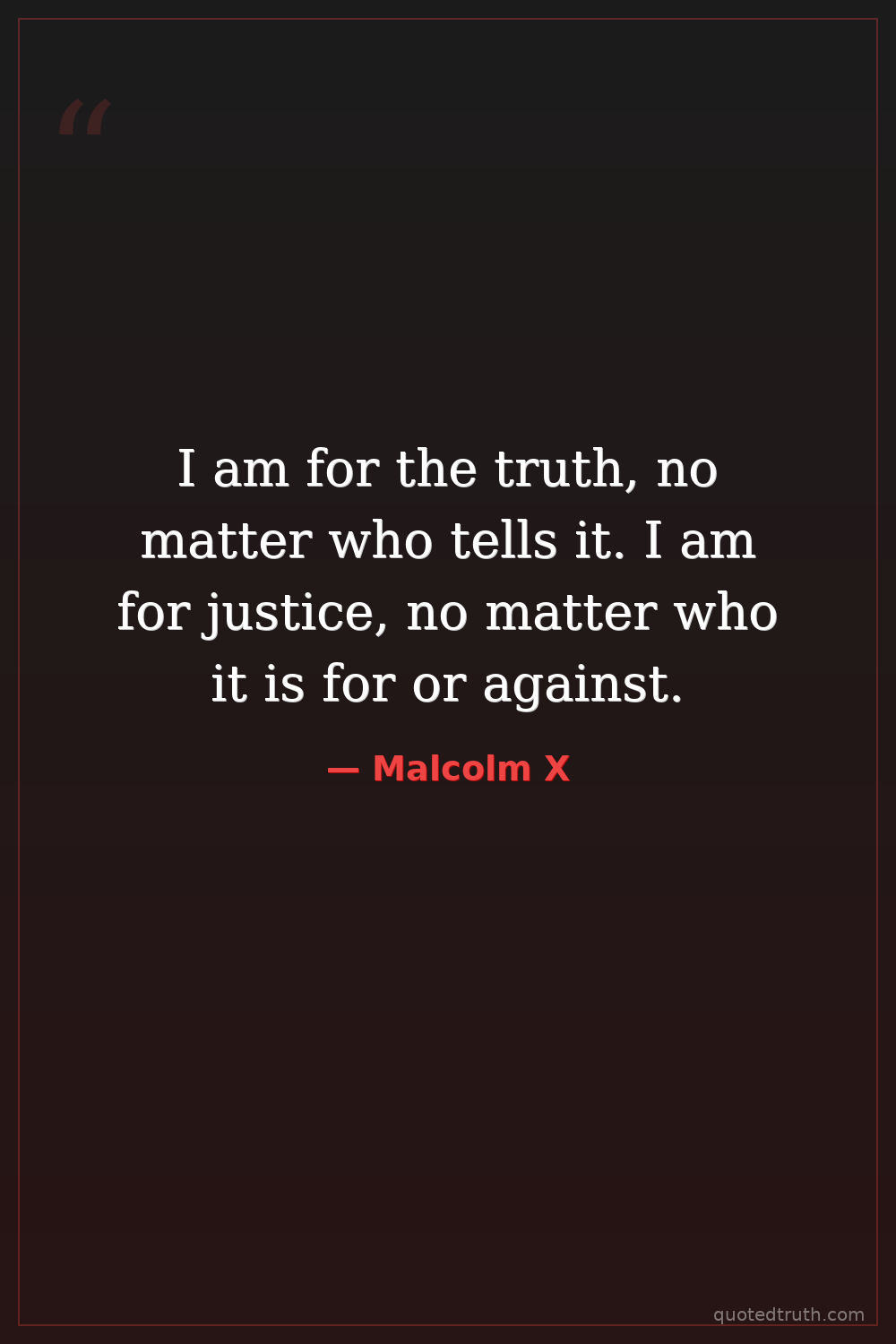 I am for the truth, no matter who tells it. I am for justice, no matter who it is for or against.