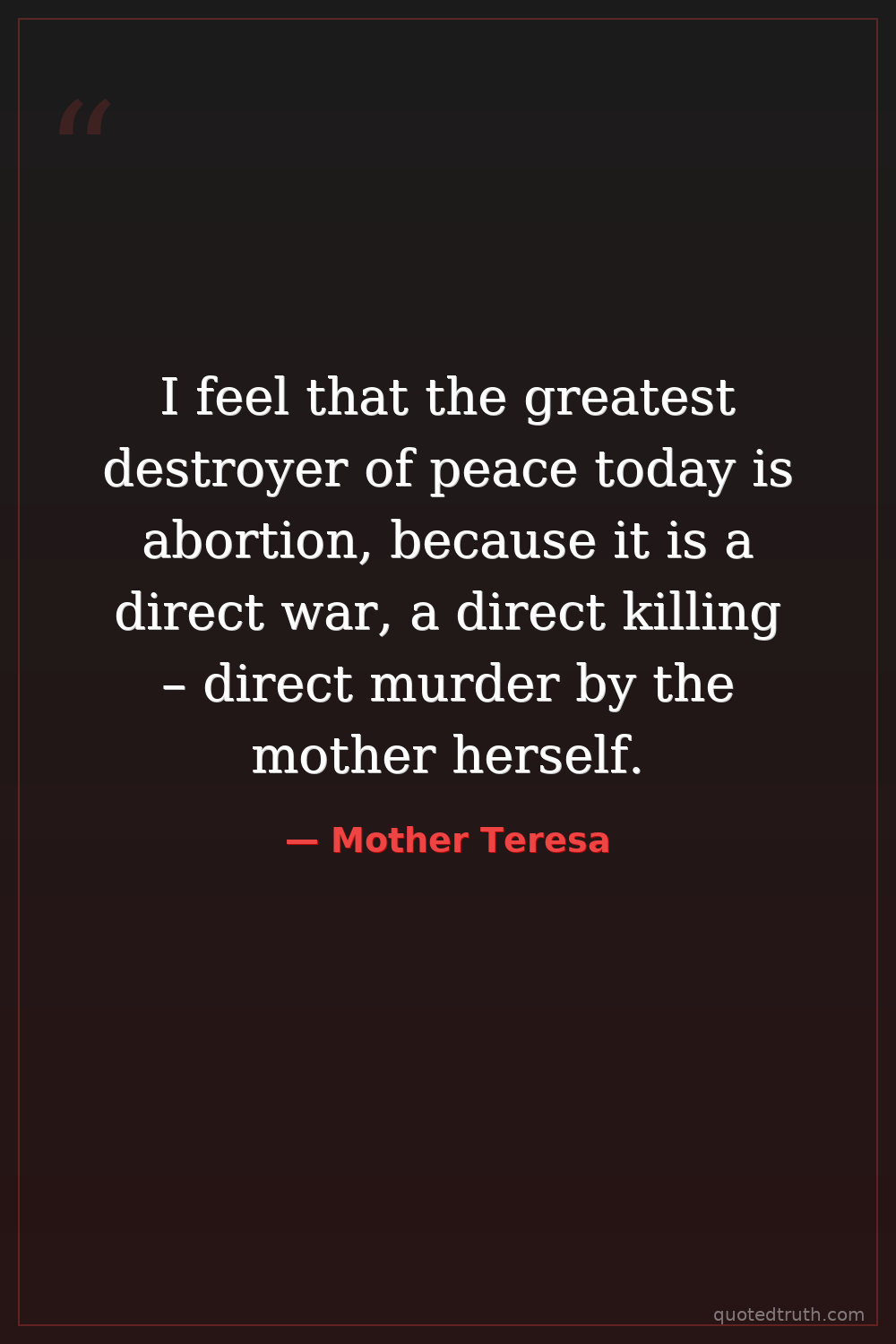 I feel that the greatest destroyer of peace today is abortion, because it is a direct war, a direct killing – direct murder by the mother herself.