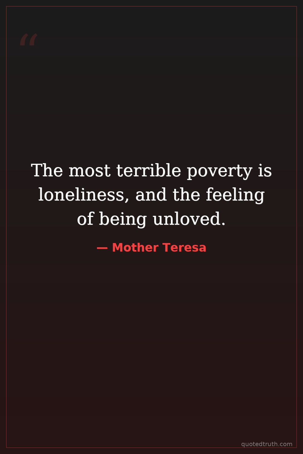 The most terrible poverty is loneliness, and the feeling of being unloved.