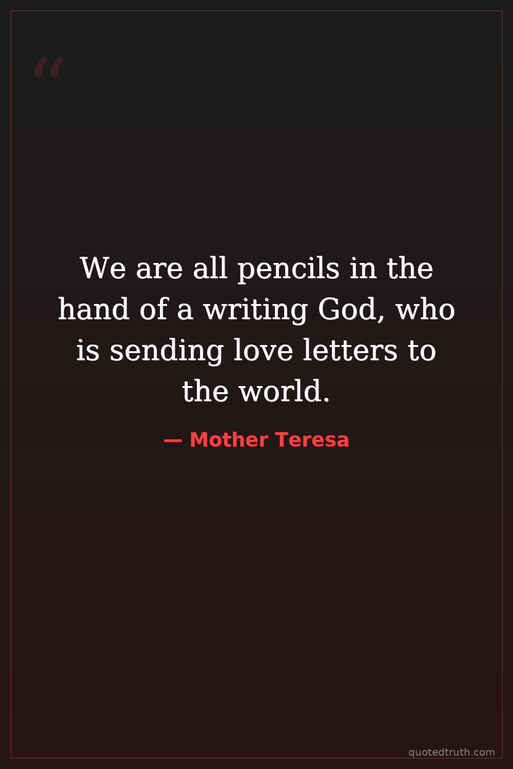 We are all pencils in the hand of a writing God, who is sending love letters to the world.