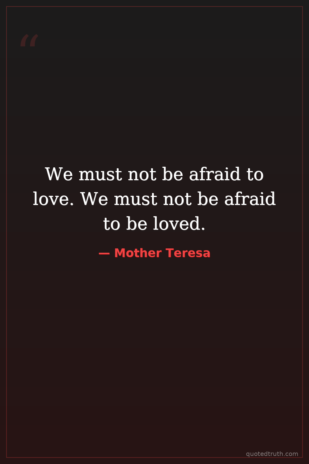 We must not be afraid to love. We must not be afraid to be loved.