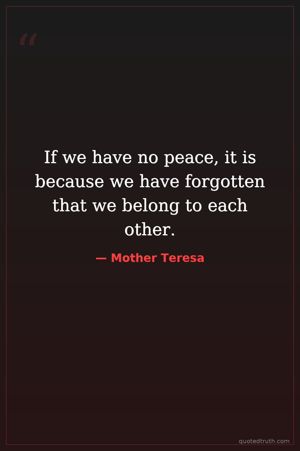 If we have no peace, it is because we have forgotten that we belong to each other.